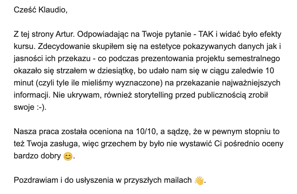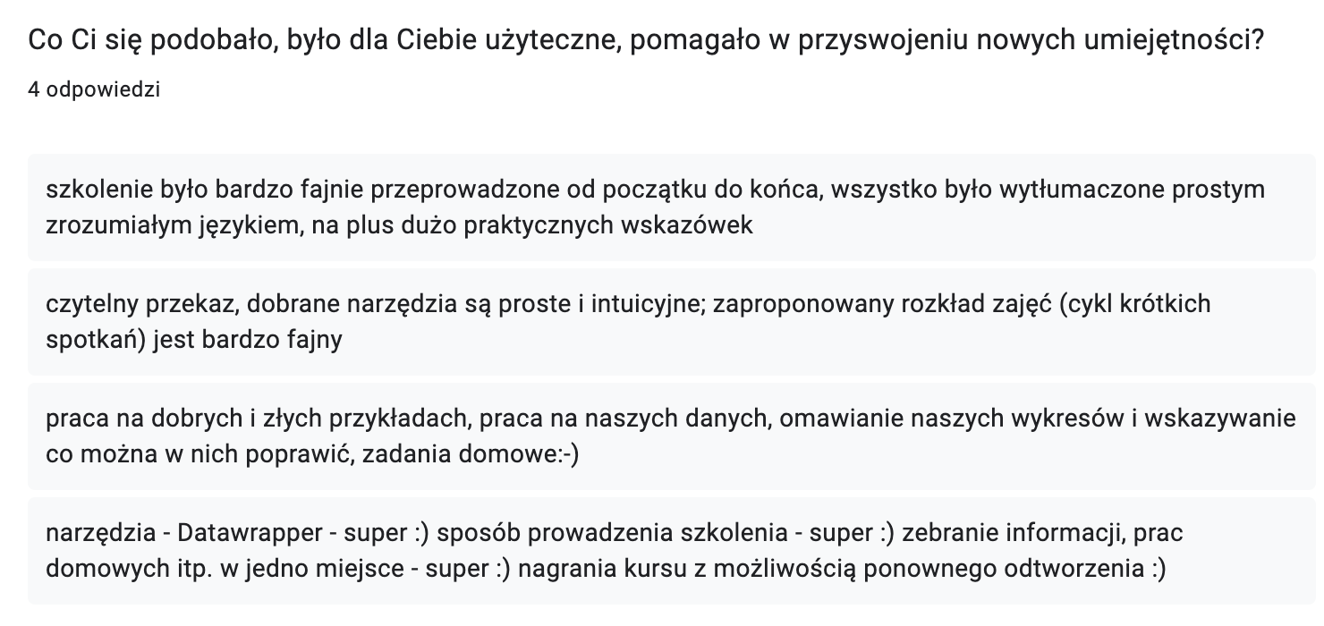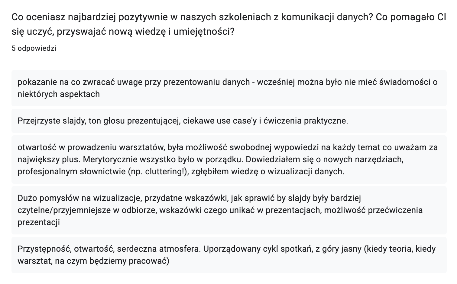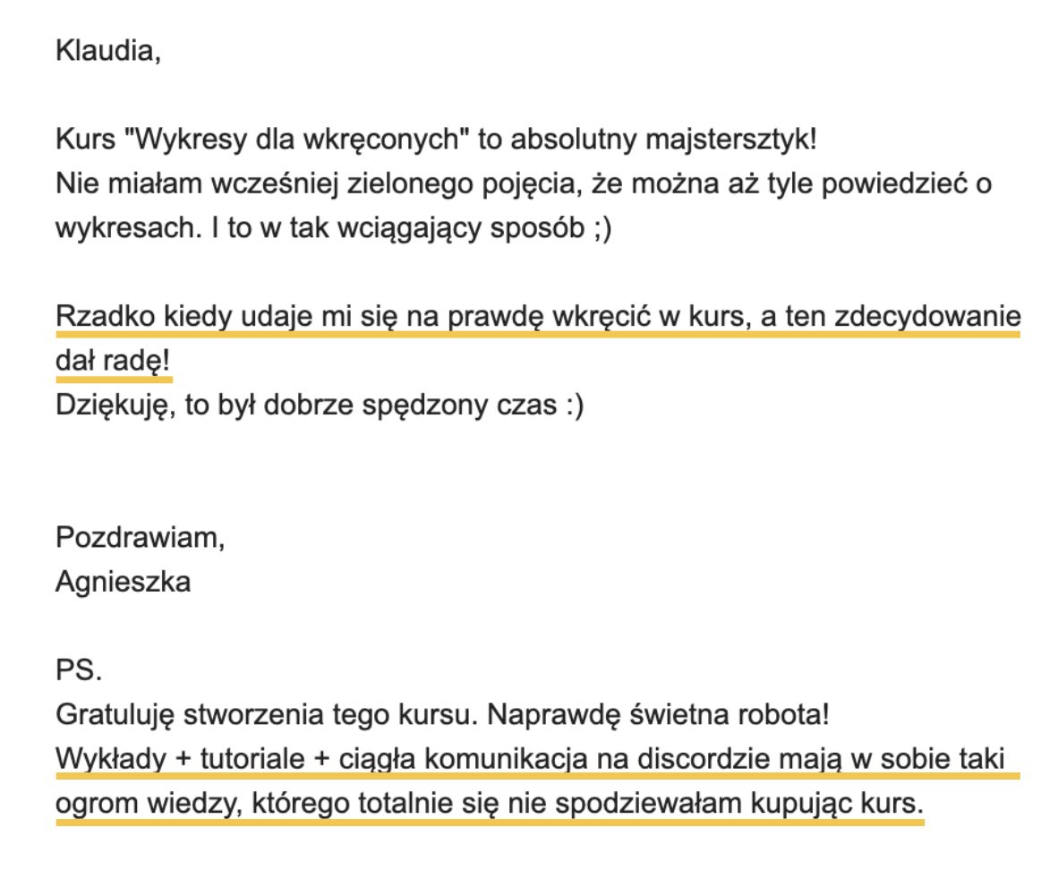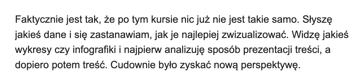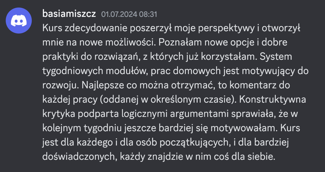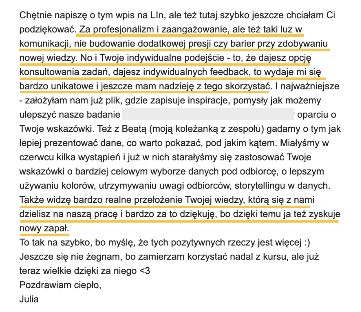 Opinie pochodzą od klientów, którzy uczestniczyli w moich kursach i szkoleniach. Opinie zbieram, weryfikuję i publikuję zgodnie z regulaminem opinii.